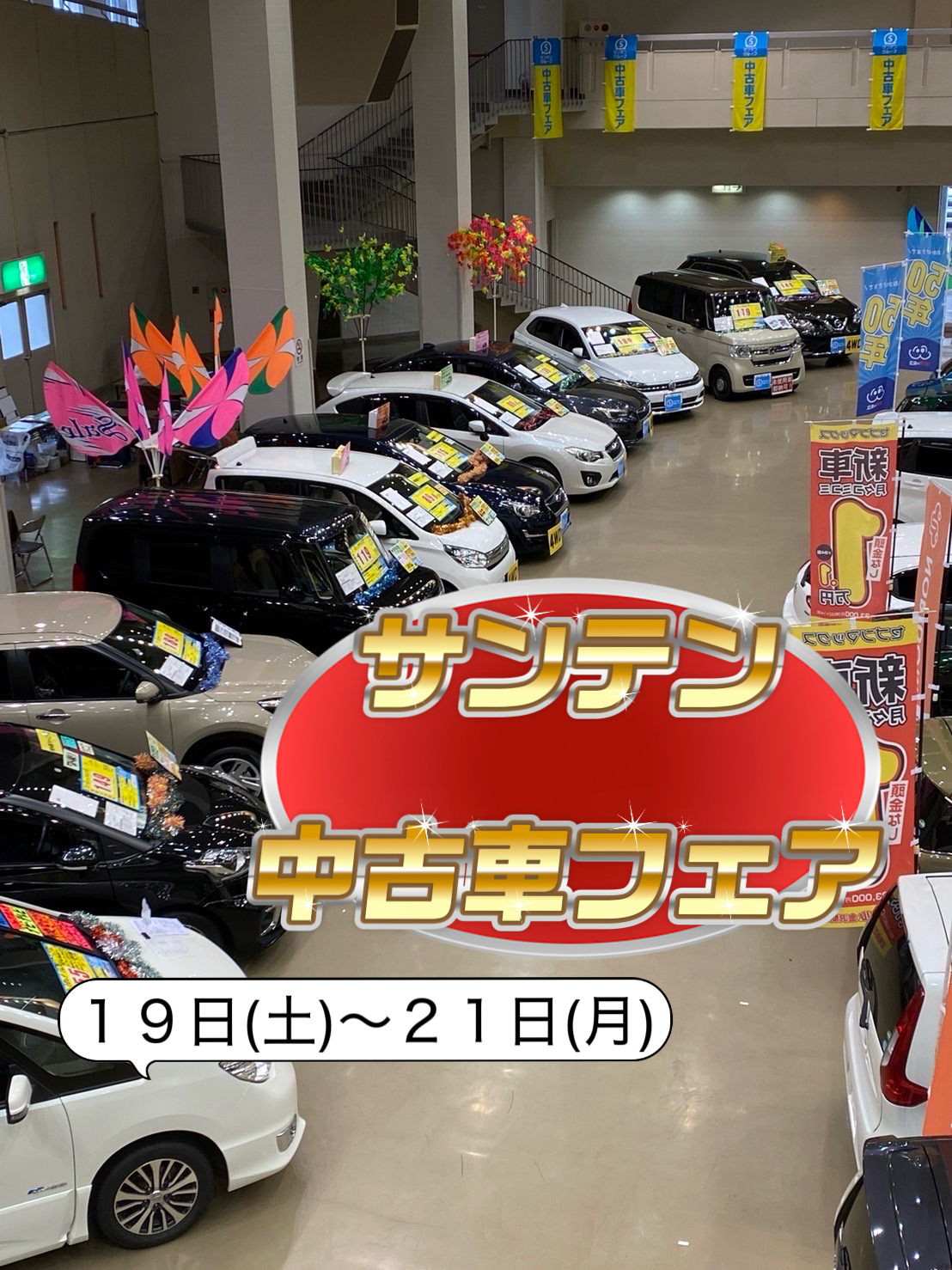 【サンテン中古車フェア】 開催日:9月20日(土)~9月21日(日) 時 間:10:00~17:00 場 所:産業展示館2号館 人気のSUVやファ...